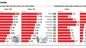 Incluso en Venezuela esa participación también es mayor que en Argentina. De las trece películas que hoy se difunden el 23% fueron realizadas en ese país. Algo parecido ocurre en México, en donde dos de cada diez materiales fueron elaborados en territorio azteca.