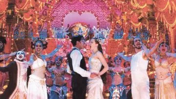 Ahora bien: todo transcurre en 1900 pero los temas son himnos pop contemporáneos -y no tanto- que recorren todos los géneros. Desde Mariano Mores a Madonna, desde Elvis Presley a Michael Jackson, desde Kylie Minogue hasta los Beatles, desde Kiss hasta Queen, todo suena en plena Belle Epoque. Pero como además se trata de hablar de una “historia arquetípica” (¿cómo sería el molde definitivo de las historias sobre artistas enamorados, sobre el mundo del espectáculo, sobre el amor imposible?), los momentos musicales son los que arman toda la acción. Como en Fantasma..., el núcleo de la trama es la puesta en escena de un espectáculo (musical) que debería servir como metáfora del mundo. Pero como la película de De Palma transcurre en los ’70 de Nixon, de Vietnam, de la caída definitiva de la confianza en el bienestar en los Estados Unidos, todo es pesimista. En Moulin Rouge, Baz Luhrmann es todavía optimista y sitúa la acción cuando la felicidad aún era posible (comienzos del siglo XX) aunque tenga que incluir algo “trágico” para ser fiel al mito.