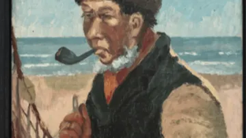 Se trata de un retrato al óleo sobre lienzo de un pescador con barba blanca, fumando en pipa mientras repara su red. En la esquina inferior derecha lleva una inscripción de la palabra Elimar.