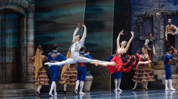 La historia sigue el romance de Basilio y Kitri busca esquivar la oposición del padre de ella, que pretende casarla con Camacho, y será el propio Quijote quien intervendrá en favor de la unión de los jóvenes. Es decir, comedia, y comedia festiva. Los personajes principales son interpretados por diferentes bailarines según cada función incluso con figuras internacionales como Marianela Núñez (Royal Ballet de Londres) y Celeste Losa (Scala de Milán).