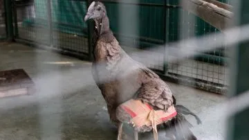 El ejemplar macho presenta una fractura en su ala izquierda y es trasladado en un vuelo de Aerolíneas Argentinas al Centro de Rescate de la Fundación Temaikén